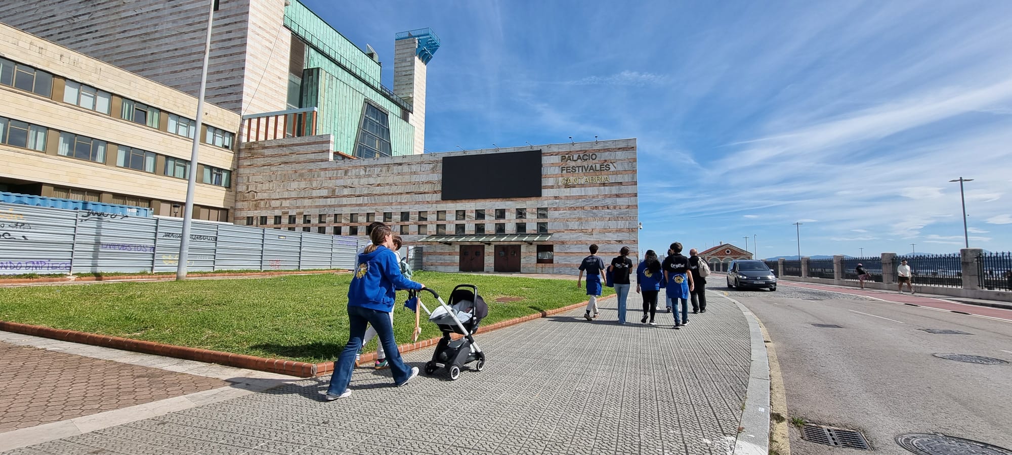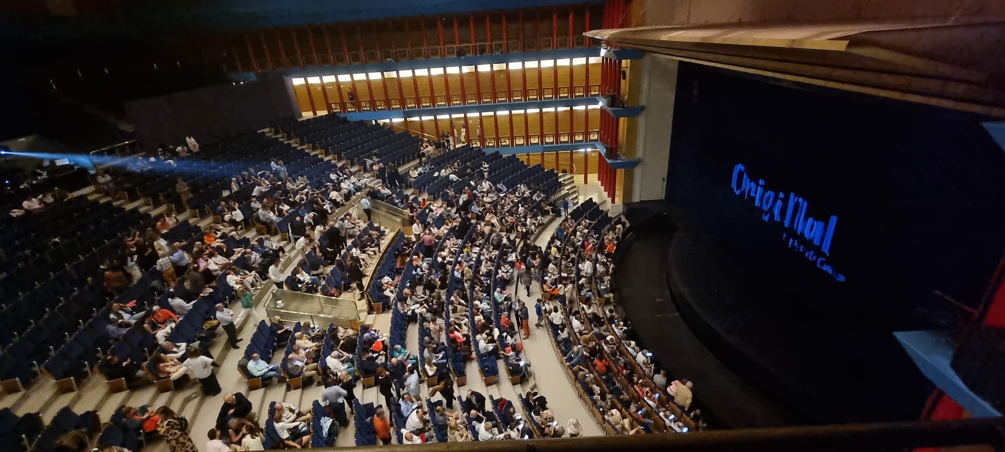 Desde el Palacio de Festivales, la bahía de Santander. Tras el telón, más de mil personas por sesión nos acompañaban para disfrutar con las ocurrencias de Carlo, de sus niños de catequesis, de su encuentro con Jesús.